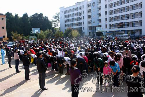 “媽媽,我愛你!爸爸,我愛你!爺爺,我愛你!奶奶,我愛你!”一聲聲飽含對父母、對親人的愛之聲響徹操場上空。