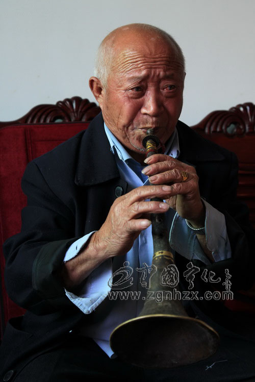 雖然已過(guò)耄耋之年,“嗩吶王”吹起嗩吶還是那么的雄渾有力。