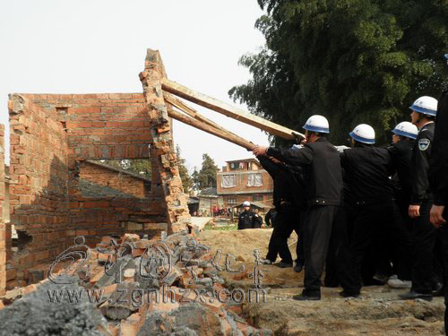 據悉,這次拆除的五宗非法占地違法建筑位于翠江鎮金雞山,均屬2011年12月建設的存量違法建筑,違法建設當事人池某、曾某等在縣人民政府發布的關于《進一步打擊非法占地違法建設行為的通告》限期內未自行拆除違法建筑物。當日下午,執法大隊、翠江鎮百余工作人員攜帶八磅硾、鋼釬等工具前往違建現場,分強拆組和警戒組經過三個小時的人工拆除作業,五處違法建筑被拆除,拆除面積約300平方米。