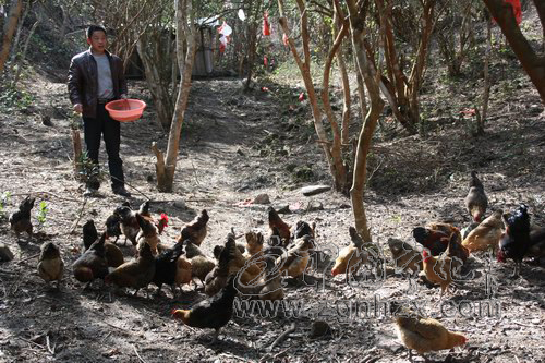 吳老板的土雞放養在油茶林里,記者看到,一盆雞蛋,近一半是綠殼蛋。綠殼蛋深淺不一,有淺綠、淡綠,也有深綠色的。樹墩上有一個剛產下的蛋,蛋殼細膩,呈深綠色。綠殼蛋不稀奇,現在有一種母雞專下這樣顏色的蛋。但吳應良養的雞都是極普通的本地雞種,以前從未聽說有誰家的本地種母雞下過綠殼蛋。“可能是雞吃多了綠色植物,對雞蛋顏色產生影響?!眳抢习逋茰y。