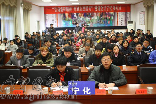 ??? 寧化在縣電信局5樓設立分會場,組織收看視頻會議。縣委常委、宣傳部長鄭曉星,副縣長林翠玲,縣文明委、縣未成年人思想道德建設聯席會議、縣社會志愿服務活動協調小組成員單位負責人,部分省市縣文明單位(學校)志愿服務隊負責人,擬恢復或申報2012-2014年度新一屆省市縣級文明單位(學校)和縣直有關部門負責人參會收看。