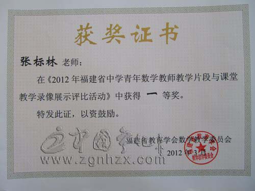 城東中學張標林老師榮獲省級數學教學評比一等獎