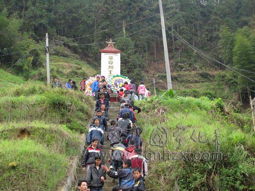 ??? 寧化民族學校:“人民為先,祖國至上,誠實勇敢,自律自強;奮發有為,誓作棟梁, 振興中華,再造輝煌。”3月31日上午,寧化民族學校五到七年級師生300多人在畬族鄉馬背嶺烈士墓前莊嚴宣誓。師生們清掃烈士墓周圍的雜草,向烈士們敬獻花圈。(賴邦友)