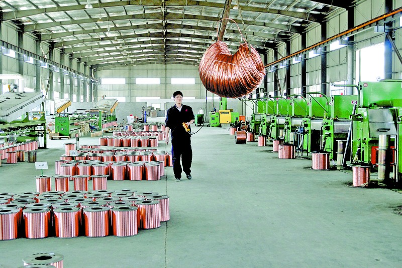 地處寧化的福建鑫宇有色金屬制品有限公司,在全省同行業率先配備了先進的德國斯派克大型多通道光譜分析儀、測氧儀、金屬材料萬能試驗機等全套檢測儀器,對產品的生產過程實施全程監測。目前,公司產品的各項技術性能指標都達到或超過國家有關標準。圖為四月七日,公司員工正吊裝經檢驗合格的無氧銅桿。(羅旺水何曉東攝影報道)