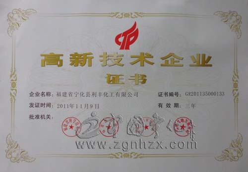 近日,寧化利豐化工有限公司由有關部門授牌,被認定為福建省高新技術企業(yè)。這是寧化縣首家被認定的省級高新技術企業(yè),標志著該縣省級高新技術企業(yè)實現(xiàn)零的突破。