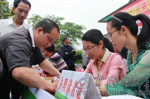 縣圖書館工作人員現場為殘疾人辦理借書證