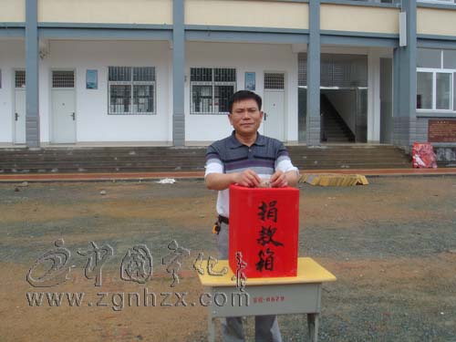 ??? 6月6日,天空飄著小雨,歌曲《愛的奉獻》在寧化縣安樂中心學校校園唱響,該校為七(2)班特困生伍臣根同學組織的捐款儀式正在這里舉行。在主持人的安排下,老師和各班學生代表依次走上臺,把自己的愛心款放進了捐款箱。
