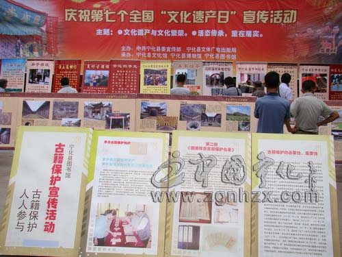??? 雖然上午下起了大雨,影響了展臺和展板的布置,但上午10點半左右雨停后,圖文并茂的展板前還是人頭攢動,所展出木活字印刷術(shù)、“玉扣紙”、高地“文武燈”、河龍祈劇等非遺項目15個展板,下曹古建筑群、社背土樓等40余個文物保護單位(點)7個展板,古籍保護4個展版引來了絡繹不絕的市民。“這種宣傳形式很好,讓我們充分認識了寧化的文化遺產(chǎn),同時也增強了我們寧化人的自豪感。”城區(qū)居民老張深有感觸地說。