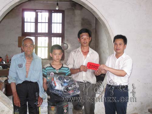 ??? 隨后,慰問人員把帶來的油和收到的愛心捐款中的2000元交給臣根爸爸,并把新購的牛仔褲、鞋子和書包交給了臣根同學,大家臨走時還鼓勵祖孫三人樹立信心,克服困難,早日重建家園。(方良清)