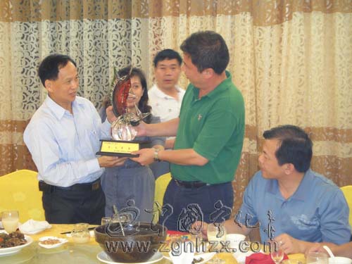 ??? 在7日的晚宴上,縣委常委、紀委書記、縣總工會主席劉小彥會見了新竹縣總工會一行,并與他們共進晚餐,雙方還互贈禮品留作紀念,已見證兩岸工會的交流。(張海溶)