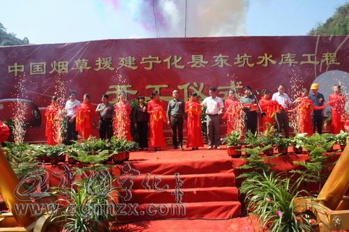 ??? 9月16日,中國煙草援建寧化縣東坑水庫工程舉行開工儀式。縣長楊勝,市水利局局長鄭加祿,縣人大常委會副主任張如梅,副縣長陳朝利,縣政協副主席馬安平,縣正處級干部、民生水利建設有限公司董事長何正彬等縣領導及縣煙草局負責人、施工單位代表出席儀式并為項目開工剪彩,水利局等縣直有關單位和泉上鎮干部群眾100多人參加儀式。何正彬主持儀式。