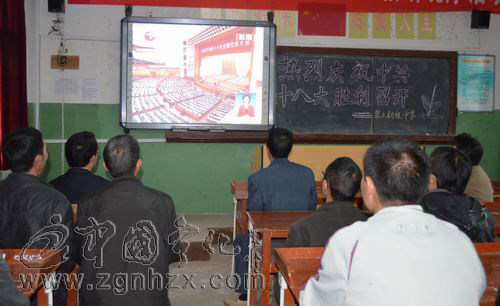 ??? 11月8日上午9時,寧化縣泉上初級中學全校教職員工在學校四樓多媒體教室集體收看黨的十八大開幕式盛況。