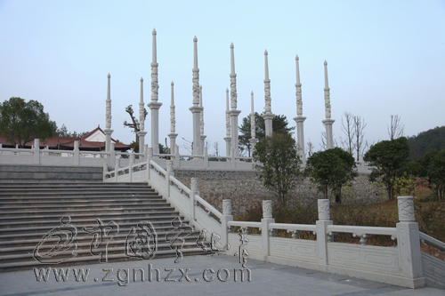??? 穿過祭祀大殿,登上臺階就可見到“客家魂”碑亭以及桅桿群,“客家魂”碑亭正面“客家魂”三字由原全國政協委員、香港南洋永芳集團總裁姚美良所書。碑亭左右各有12根桅桿, 12代表了一個輪回。桅桿也叫石筆,是客家人的旌表之物。族中若有人取得功名,除在祠堂大門或廳堂上高懸匾額外,還要在祠堂門前豎立桅桿,以示榮耀和激勵后人讀書仕進,激勵著子孫后代成才立業。