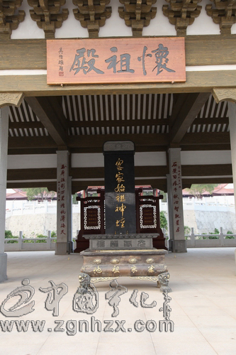 ???? 主殿上方的匾額“懷祖殿”三個俊秀飄逸的大字為臺灣中國國民黨榮譽主席吳伯雄所題。大殿內(nèi)設有客家始祖神壇,整個神壇高近3米,重約38噸。 神壇上“客家始祖神壇”六個蒼勁有力的大字為郭沫若的字體,據(jù)記載郭沫若祖籍系寧化石壁人。