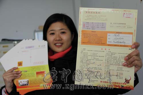 元旦期間,寧化縣委組織部向全縣黨員干部寄出學習十八大有獎競賽賀年卡10000份。賀年卡正面展示了縣委組織部近年來的工作成果,背面是十八大知識競賽答題卡,在向廣大黨員干部送上溫馨祝福的同時,讓黨員干部廣泛參與到學習十八大精神當中。(張瑞蘭)