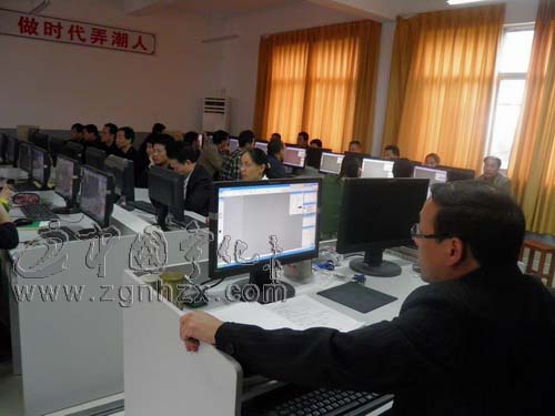 5月3日,三明工貿學校全體教師進行計算機軟件使用培訓,學校計算機教師黃仕強、劉青分別在兩個機房對老師進行培訓和輔導。