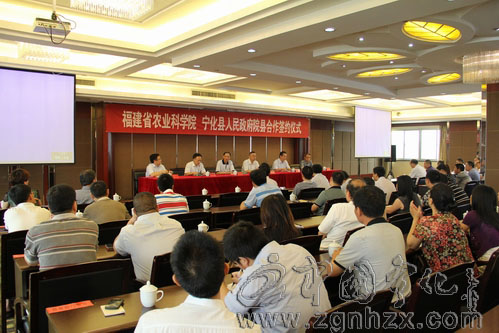5月31日,寧化縣人民政府就農業科技合作與省農科院簽訂協議。省農科院副院長、研究員翁伯琦等有關領導專家,寧化縣副縣長陳朝利等出席簽約儀式并講話。副縣長張敬豐主持儀式。