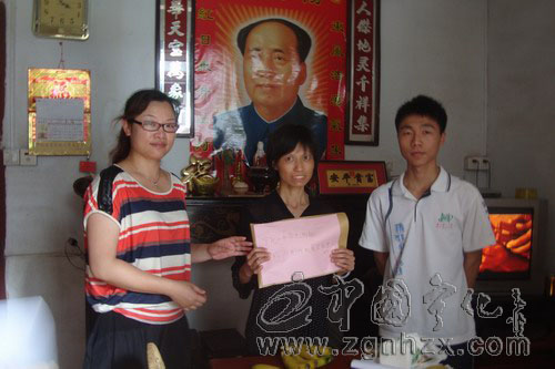 6月1日,寧化一中學生會主席曾慶洪將學生自發捐助的善款28871元送到寧化六中廖有斌老師的親人手中。