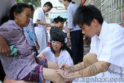 義診從早上八點開始,十一點三十分結束;下午三點開始,六點結束。為使活動能夠惠及更多群眾,大學生們還在城區發放了300來份義診活動宣傳單?,F場,前來咨詢問診和接受治療的群眾絡繹不絕。這些學習康復、針灸、中西醫結合等專業的學生態度熱情,不厭其煩,施展自己所學為群眾診斷,施用針灸、拔罐、推拿等治療,開展健康小常識和吸煙有害健康等宣傳。