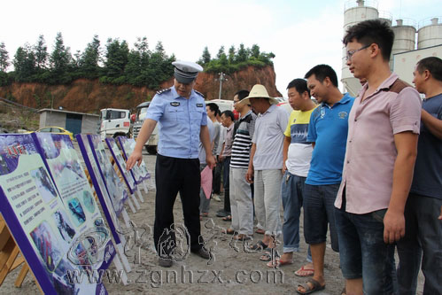 7月24日下午,寧化交管大隊民警帶著交通警示展板和宣傳資料,來到客家商砼公司車間,給這里的20多名司機送“法”送提醒。