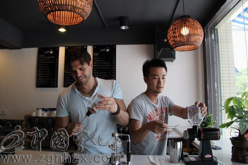 ??? 寧化縣江濱路新開了一家“樂咖啡”,店主是名法國小伙子。