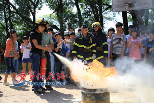 ??? 隨后,新生們在消防官兵的帶領下參觀了解了各種消防車輛、防護服裝等裝備。現場示范了如何檢查、使用滅火器,消防水槍,水帶,消防剪等消防設施。“拔下保險銷、一手握緊噴管、另一手捏緊壓把,站在上風處,用噴嘴對準火焰根部掃射。”為進一步提高學生的參與熱情,消防官兵還采取互動方式,邀請學生演示滅火器的使用方法,并現場為他們糾正動作,讓現場新生們觀摩學習。“這堂課很有意義,我學到了火災逃生自救、如何查找火災隱患,萬一遇到火災,我也不會心慌了,”幼師專業新生肖清香表示。(羅 鳴 周天華)