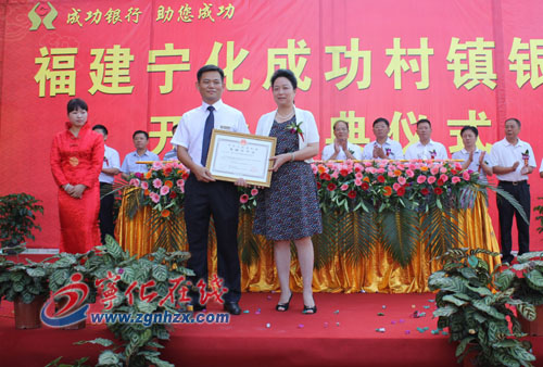 ??? 南安市人民政府副市長黃輝燦,人民銀行三明中心支行紀委書記陳鴻富,銀監會三明監管分局紀委書記伊躍峰,中共寧化縣委副書記楊興忠,寧化縣人民政府副縣長劉小帆,福建省農村信用社聯合社三明辦事處主任陳志揚,福建南安農村商業銀行董事長陳文清及寧化各鄉(鎮)、各金融機構的主要負責人,寧化成功村鎮銀行的客戶代表出席了開業慶典。(伊仕鵬)