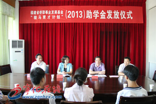 ??? 9月13日上午,福建省僑聯事業發展基金暨“駿馬育才計劃”助學金發放儀式在寧化縣委三樓會議室舉行,9名僑界家庭困難學生分別獲得4000元至1500元不等的助學金,現場共發放助學金1.9萬元。三明市僑聯主席關文良,寧化縣委常委、統戰部長黃芳出席發放儀式。