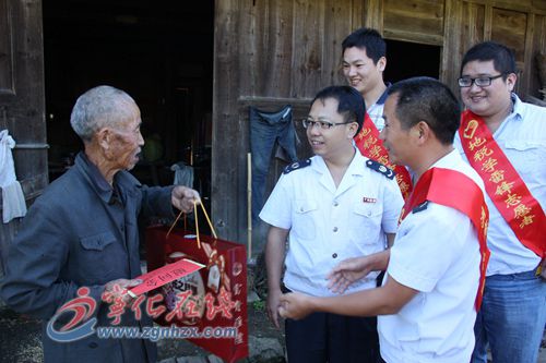 9月17日,寧化縣地稅局學雷鋒志愿服務隊為湖村鎮城門村80歲老人陳顯海送來了月餅和慰問金。