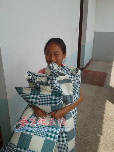 ??? 9月18日,寧化縣客家學校四年級(1)班的張旭華同學,抱著剛領到的棉被、墊被和枕頭,心里樂開了花。她說:“這個冬天我們不再寒冷。”
