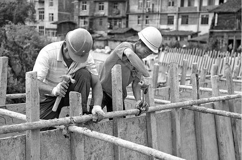 10月17日,在寧化水茜鄉上謝支流下游河岸,工人們正在進行防洪堤壩施工建設。