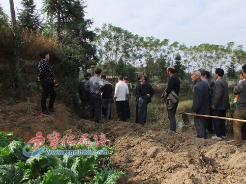 11月6日,在寧化縣翠江鎮(zhèn)小溪村翠華西路二期項(xiàng)目前期工作現(xiàn)場,縣國土資源局、翠江鎮(zhèn)、小溪村、小溪村5組等人員正進(jìn)行土地測量工作。
