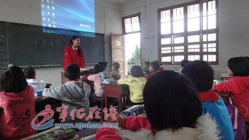 ??? 11月11日上午,2012年世界小姐冠軍于文霞攜“雪佛蘭?紅粉筆鄉村教育計劃”支教隊12人來到寧化縣水茜廟前小學開展義務支教活動。
