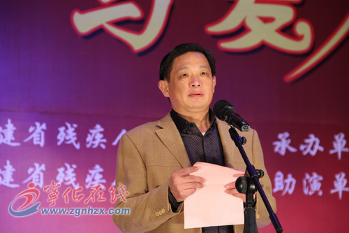 ??? 11月15日晚,2013年福建省殘疾人藝術團“共享陽光?與愛同行”全省巡演來到寧化,在寧化六中禮堂為師生們帶來了一場豐富多彩的文藝表演。縣領導林移發、吳金珠和省市縣殘聯領導以及殘疾人代表、該校師生等1000余人觀看了演出。
