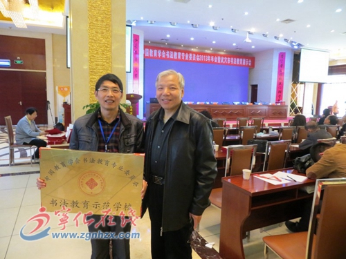 城東中學校長王騰翀與全國書委會副秘書長王維義(右)合影