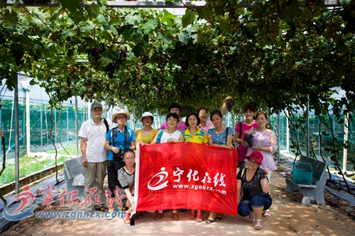 ??? 享用過美味佳肴后,大家來到了寧化石壁現代農業觀光園。為支持活動,寧化石壁現代農業觀光園給參加活動的網友們每人贈送了價值100元的水果券。走進采摘園區,網友們熱情高漲,不顧炎炎烈日,沉浸在了采摘提子的樂趣中。有人提著小藍手拿剪子,貓腰抬頭尋找最黑最大的成熟果實,有人拿著相機、手機忙不停地拍著照片。采摘活動結束后,大家還紛紛購買了各類品種的提子和哈密瓜。據了解,本次采摘的提子品種——夏黑,曾榮獲2013福建省葡萄優質果巨峰夏黑類金獎,它的含糖量達20%,皮緊沾果肉,是中國市場上最好吃的葡萄品種之一。園區內各個品種的提子、哈密瓜采摘期可一直持續到秋季。