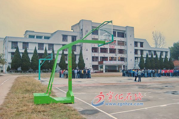 11月24日上午,一對嶄新的室外移動玻璃鋼板籃球架完成安裝、立架,為該校操場增添了一道新風景。寧化三中94屆高中校友曹仁宗為表對母校的感恩之情,捐贈了戶外移動玻璃鋼板籃球架一對和室外乒乓球桌一臺等體育設施,價值2萬余元。