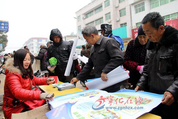 工作人員向群眾發(fā)放掛圖