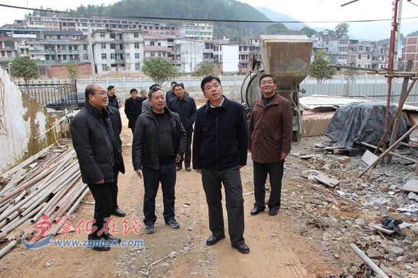 鄧本元(右二)視察治平畬族鄉(xiāng)幼兒園項(xiàng)目建設(shè)