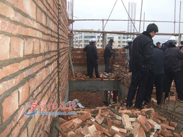 2月4日上午,正值立春時節,寧化縣城市管理綜合執法大隊組織60余人冒雨對搶建的3處違法建筑依法進行了強制拆除。