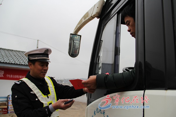 隨著春運序幕的拉開,聯通福建西部和江西南部的省道307線開始繁忙起來,省際間的人流、物流日益增加。為了確保司機、旅客的安全,寧化縣于1月30日啟動了省際春運服務站。該服務站抽調縣交通執法、公安交警等部門執法人員組成執法服務小組,實行24小時三班輪流值守,對過往的長途客車、縣內班車、旅游包車、危貨運輸車及7座以下載客車輛進行嚴查。并為過往群眾、駕駛員、旅客提供開水、應急藥物、休息、交通違法查詢等服務,還通過站前擺放交通事故警示圖片、發放交通安全宣傳單等形式,大力開展“交通安全你我他、交通安全靠大家”宣傳活動。