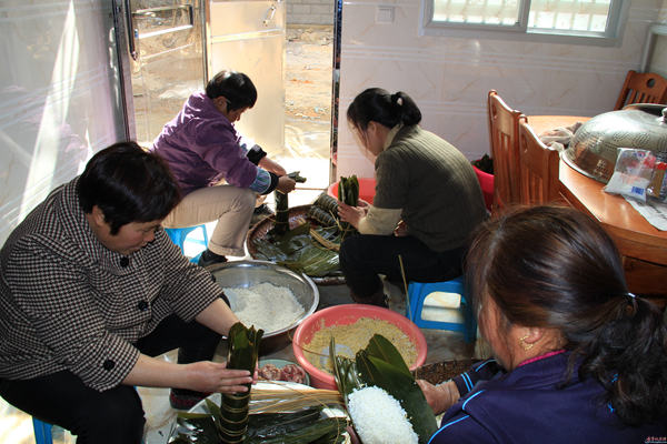 ??? 2月12日,在寧化縣泉上華僑農場越南歸僑韋忠五家中,歸僑們正在包“大炮”粽子。“大炮”粽子造型獨特,長約30厘米,重達1至1.5公斤,粽子內有糯米、綠豆和五花肉。越南有包粽子過春節的習俗,春節來臨,寧化縣212戶越南歸僑家家戶戶都在包“大炮”粽子迎新春。 (張麗勍 攝)