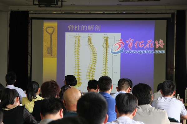 ??? 培訓現場,來自寧化縣醫院和中醫院的醫生分別以幻燈片形式介紹心肺復蘇、脊柱損傷現場急救、中醫急救等有關急救常識,并利用模擬人進行心肺復蘇術的現場急救操作示范。