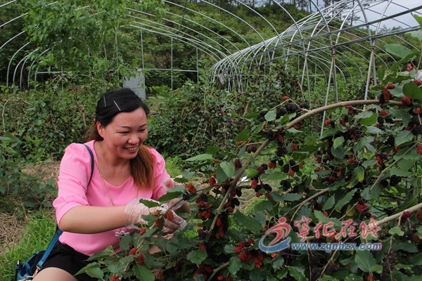??? 寧化縣曹坊鎮綠禾農莊的桑葚近日進入了成熟期。“這里的桑葚味道真的很不錯,酸酸甜甜的,我上次來的時候采了10多斤用來泡酒,今天來采幾斤回家吃。”5月14日,在寧化縣曹坊鎮綠禾農莊桑葚采摘園里,石牛村村民陳女士采得不亦樂乎。