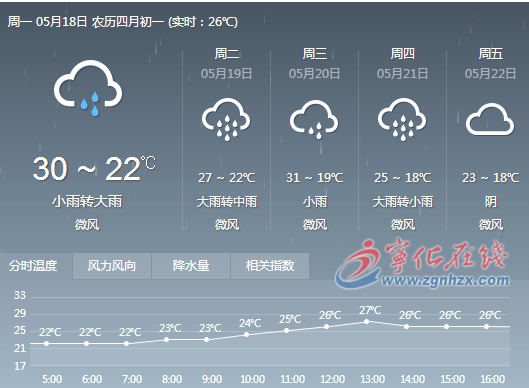 具體天氣預報:19日:大雨轉中雨,22°C-27°C;20日:小雨,19°C-31°C;21日:大雨轉小雨,18°C-25°C;22日:陰,18°C-23°C;23日:多云轉陰,21°C-27°C;24日:小雨,21°C-29°C。(張茜茜 劉敬澄)