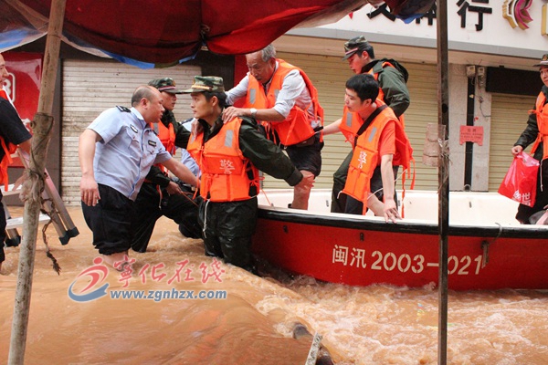 ??? “慢慢來(lái),靠住船體。”此時(shí)驚魂未定的被困群眾已是手足無(wú)措,被洪水圍困得饑腸轆轆,由于著急,腳一滑摔入水中,徐所長(zhǎng)見(jiàn)狀立即將其一把抓住,在武警與消防官兵的合力下將這名群眾頂上了沖鋒舟。