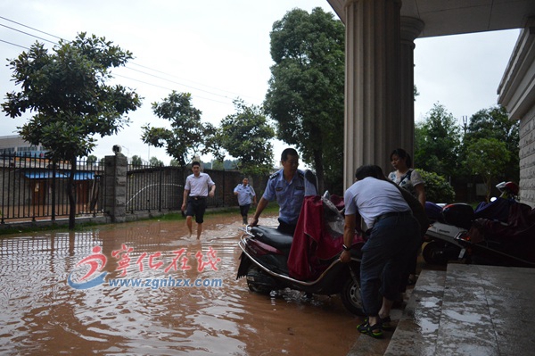 ??? 19日上午8時30分,寧化法院緊急成立防洪搶險領導小組及時啟動預案。俞和勇院長親自安排部署防洪搶險工作,要求各部門、庭室認真做好法院內部防洪搶工作,同時積極響應縣委、政府號召服務全縣抗洪搶險大局,保障人民群眾的生命和財產(chǎn)安全。全院干警全部到崗到位,全力備戰(zhàn)抗洪搶險工作。下午18時,水位迅速上漲,導致全院停電,嚴重威脅法院立案庭、車庫、值班室等地勢較低地帶。干警們緊急轉移重要設備及卷宗材料,盡可能減少損失,并由陳健黨組帶領10余名干警組成應急小分隊留守值班,時刻關注洪水情況。晚上,10點左右水勢有所緩和,至11點30分左右洪水退出法院,直到這個時候留守干警才放心的在燭光的照耀下草草的吃了兩口飯。不過,為確保安全,提防洪水再次來襲,干警們繼續(xù)留守至天亮。