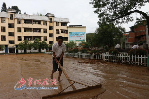 ??? 地處寧化南片的安樂中心學校,是此次該縣受災最嚴重的一所學校。一進校園,只見校園淤泥厚達十幾厘米,臨時板房教室被沖毀,食堂堆滿淤泥雜物,圍墻倒塌300多米,廁所全部浸泡水中……整個校園一片狼藉。校長黃景星組織全校教師清理學校通道和一層過水教室、辦公室、食堂等場地的淤泥雜物,清洗被洪水浸泡的桌椅等教學設施;組織災后處置小組為滯留學生提供飲用水、面包和熱稀飯等食物。目前,該校各項災后重建工作正艱難有序地開展。
