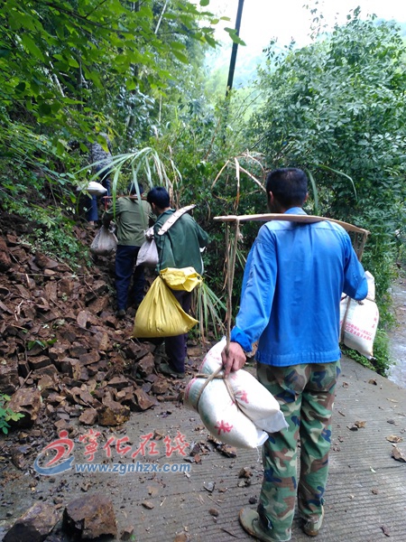 ??? 為了確保該自然村的村民不會挨餓,25日一大早,鄉黨委、政府派出2名退伍的年輕黨員干部帶隊,帶領安樂村12名自告奮勇的黨員徒步跋涉12公里,經過4個多小時的跋涉,將560斤的大米送到即將斷糧的銅盤自然村。