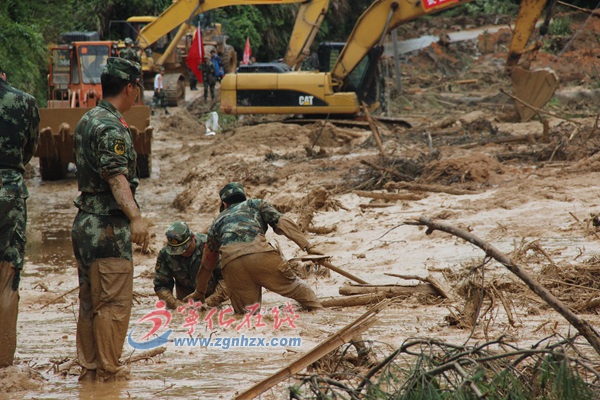 ??? 搶通泥坑村公路后,中隊又接到為縣道治平段搶險的任務(wù)。